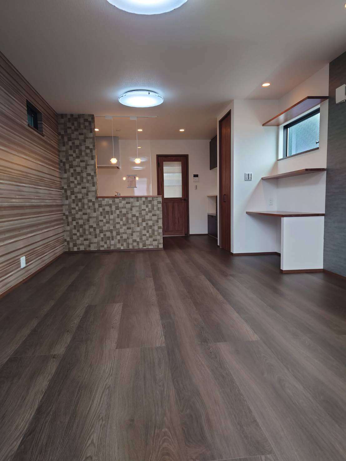 中村区靖国町 2021/08/26 タイトル 中村区靖国町 こんにちは!中村です♪ 靖国町の進捗状況お伝え致します☆室内がほぼ完成しました。いい感じですよ♪あとは外構工事のみとなりました。※参考までにリビングの写真添付します(^^)/ 当社の標準装備です♪ LD床暖房、カップボード(食器棚)、食洗機、書斎、各居室照明、浴室TV付、各居室アクセントクロス、ウォークインクローゼット、宅配ボックス等充実してます♪ 今週土、日8月28日、8月29日 AM10時~PM5時 オープンハウスを実施してますのでお気軽にご来場ください♪お待ちしております(^^)/